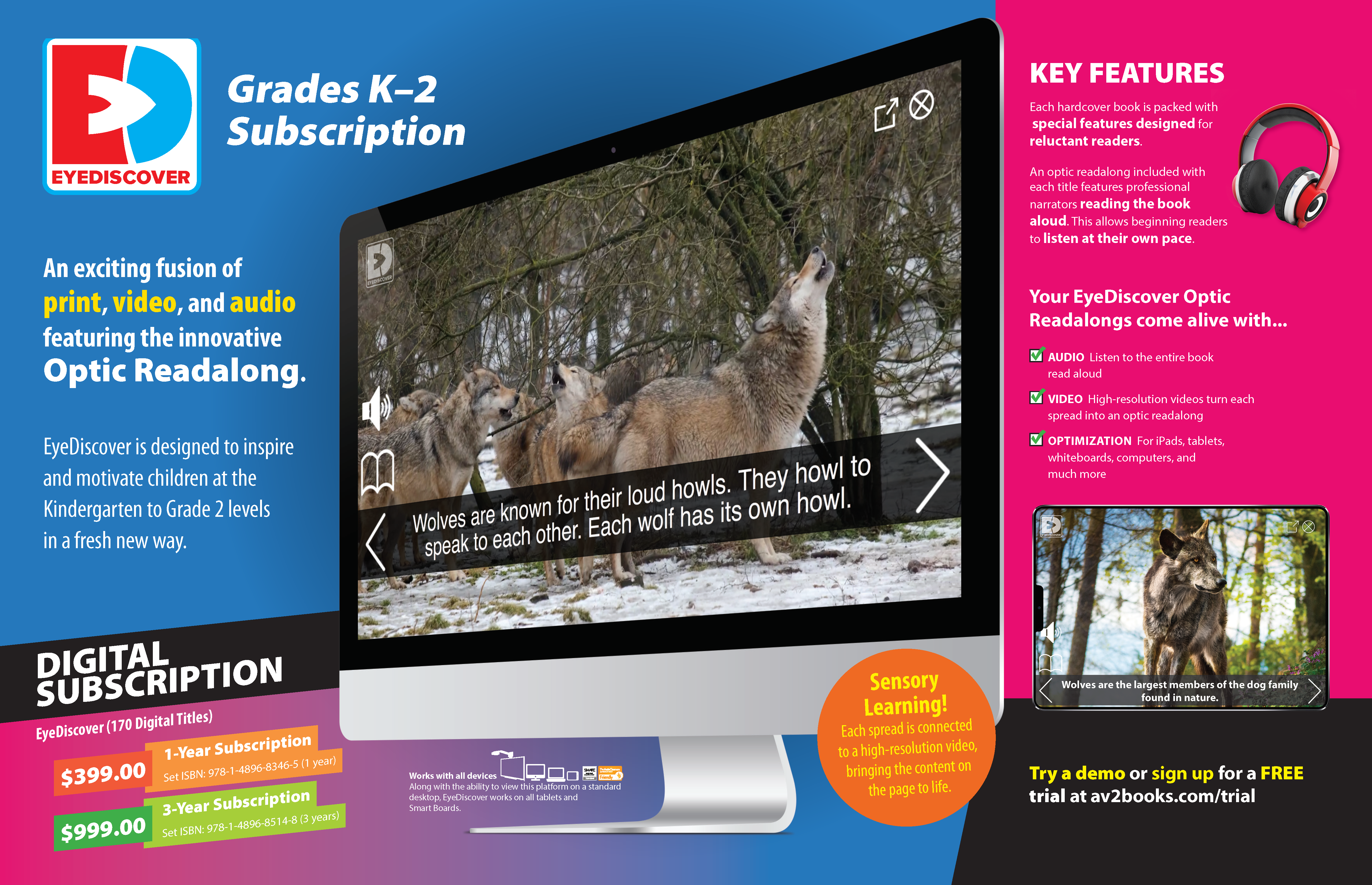 than 150 innovative optic read-along digital titles spanning K–2.